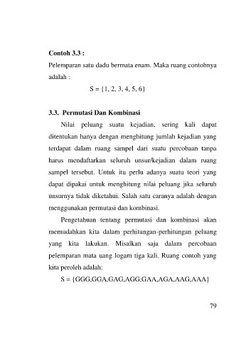 Pelemparan satu dadu bermata enam. Maka ruang contohnya
