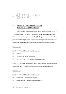 (c) T(v − w) = T(v) − T(w) untuk semua v dan w di V.