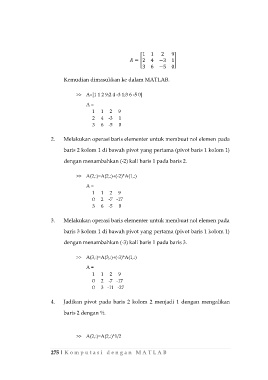 2. Melakukan operasi baris elementer untuk membuat nol elemen pada