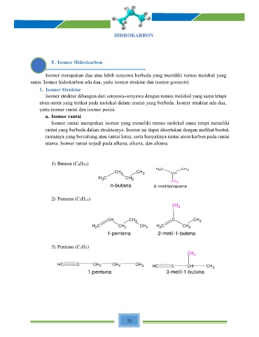 sama. Isomer hidrokarbon ada dua, yaitu isomer struktur dan isomer geometri.