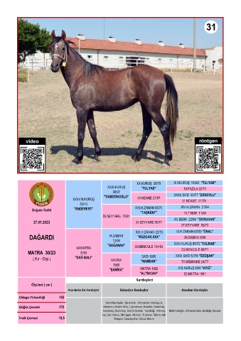 ( Kır - Dişi ) "DAĞ BALI" MATRA "NAMDAR" XXXI.SA'D 52/78 "ÖZÜŞAN"