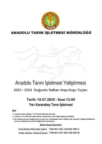2- Taylar 03.07.2025 tarihinden itibaren Karacabey Tarım İşletmesinde görülebilir.