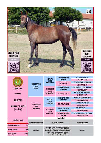 ( Kır - Dişi ) "UFUKKIZ" 101.MEBRUKE XXXVIII.SA'D 65/88 XXIII.SA'D 22/74