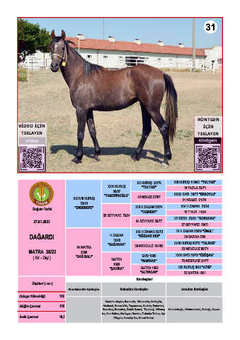 ( Kır - Dişi ) "DAĞ BALI" MATRA "NAMDAR" XXXI.SA'D 52/78 "ÖZÜŞAN"