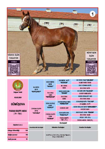 ( Kır - Dişi ) "AKYAZILI" 1.FARAH BUFFI XLIX.SA'D 21/01 XXXVI.SA'D 54/84 "ÖZGÜN"