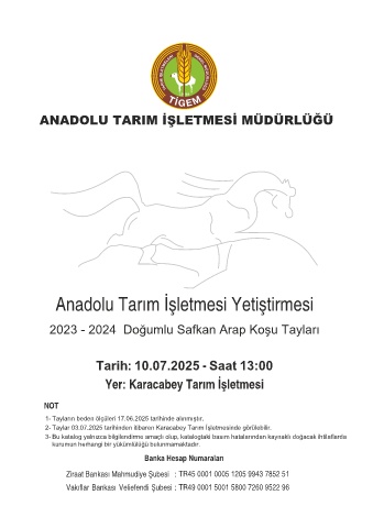 2- Taylar 03.07.2025 tarihinden itibaren Karacabey Tarım İşletmesinde görülebilir.
