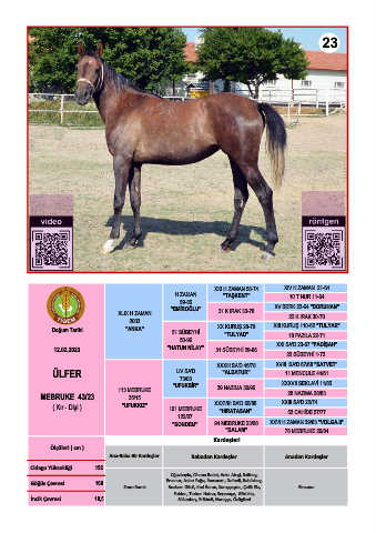 ( Kır - Dişi ) "UFUKKIZ" 101.MEBRUKE XXXVIII.SA'D 65/88 XXIII.SA'D 22/74