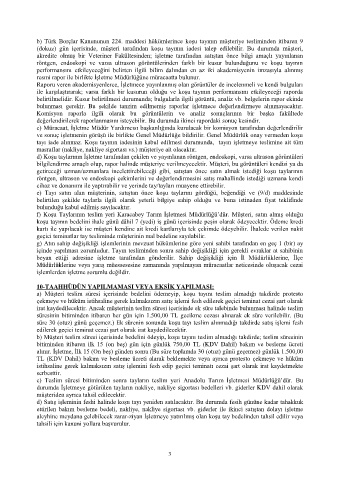 ile karşılaştırarak; varsa farklı bir kusurun olduğu ve koşu tayının performansını etkileyeceği raporda