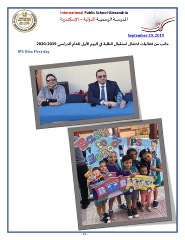 International Public School-Alexandria ةيردنكسلإا – ةيلودلا ـــــــ ة يمسرلا ة ـــــــــ سردلما September 29, 2019 . 2020 - 2019 يساردلا ماعلل لولأا مويلا ي ف ةبلطلا لابقتسا لافتحا تايلاعف نم بناج IPS Alex First day - 13 -