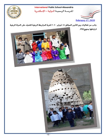 International Public School-Alexandria ةيردنكسلإا – ةيلودلا ـــــــ ة يمسرلا ة ـــــــــ سردلما February 1 , 7 2020 ةيفيرلا ةايحلا ىلع فرعتلل ةيفيرلا ةطيرازملا ةيرقل ٢٠٢٠ رياربف ١٧ قفاوملا نينثلاا موي تايلاعف نم بناج . FS1 جهنمب اهطابترلا - 42 -