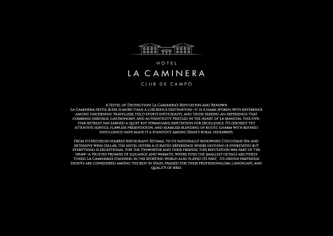 La Caminera Hotel & Spa is more than a luxurious destination—it is a name spoken with reverence among discerning travellers, field sports enthusiasts, and those seeking an experience that combines heritage, gastronomy, and authenticity. Nestled in the heart of La Mancha, this five- star retreat has earned a quiet but formidable reputation for excellence. Its discreet yet attentive service, flawless presentation, and seamless blending of rustic charm with refined indulgence have made it a standout among Spain’s rural hideaways.