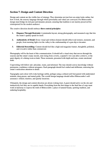 Typography and colour will evoke heritage subtly, perhaps using a refined serif font paired with understated neutrals, deep greens, and muted golds. The overall design language should reflect Bittescombe’s self- assurance: refined, timeless, and quietly luxurious.