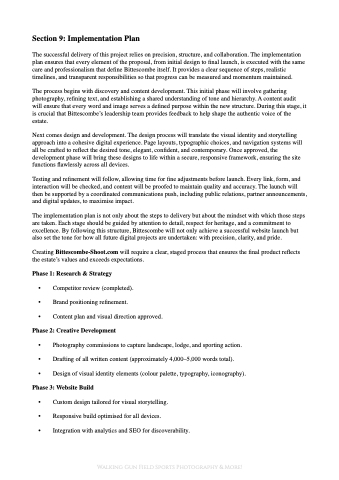 The implementation plan is not only about the steps to delivery but about the mindset with which those steps are taken. Each stage should be guided by attention to detail, respect for heritage, and a commitment to excellence. By following this structure, Bittescombe will not only achieve a successful website launch but also set the tone for how all future digital projects are undertaken: with precision, clarity, and pride.