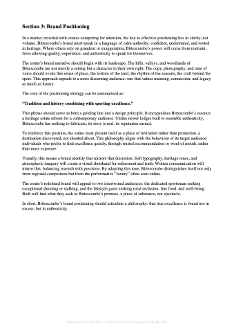 The estate’s brand narrative should begin with its landscape. The hills, valleys, and woodlands of Bittescombe are not merely a setting but a character in their own right. The copy, photography, and tone of voice should evoke this sense of place, the texture of the land, the rhythm of the seasons, the craft behind the sport. This approach appeals to a more discerning audience: one that values meaning, connection, and legacy as much as luxury.