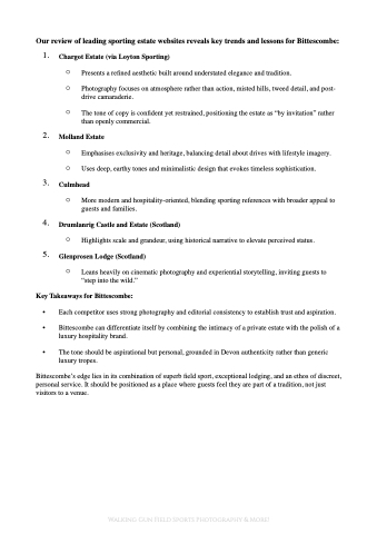 Our review of leading sporting estate websites reveals key trends and lessons for Bittescombe: