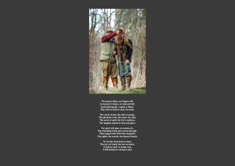 The crack of shot, the drift of smoke, The pheasant’s rise, the cheer, the joke; The scent of earth, the fire’s embrace, The laughter shared in time and place.