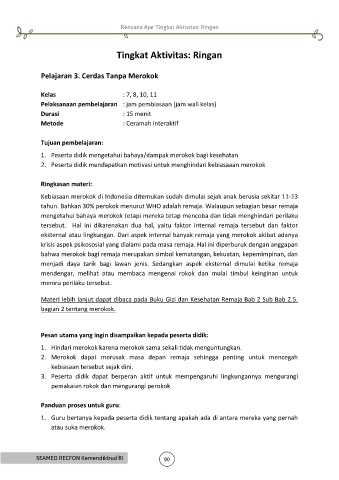 Rencana Ajar Tingkat Aktivitas: Ringan