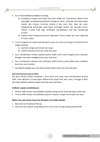 didik, maka aktivitas ini tetap dapat dilaksanakan tanpa buah atau sayur, sehingga di akhir