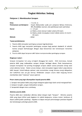 1. Peserta didik menyadari pentingnya sarapan bagi kesehatan.