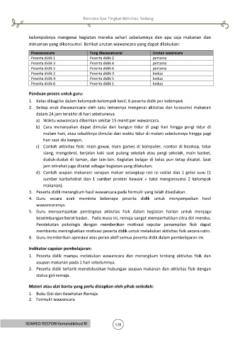 2. Setiap anak diwawancarai oleh satu temannya mengenai aktivitas dan konsumsi makanan