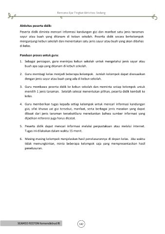 1. Sebagai persiapan, guru meninjau kebun sekolah untuk mengetahui jenis sayur atau