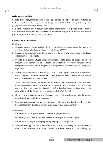 3. Peserta didik diberikan tugas untuk menyampaikan satu pesan gizi kepada kelompok