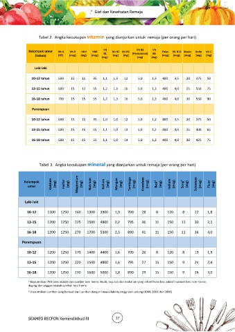 Tabel 3. Angka kecukupan mineral yang dianjurkan untuk remaja (per orang per hari)