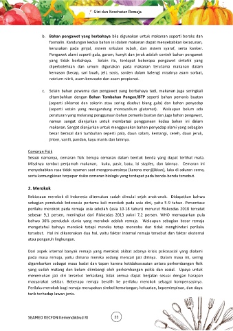 b. Bahan pengawet yang berbahaya bila digunakan untuk makanan seperti boraks dan