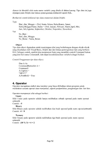 Berikut ini contoh deklarasi tipe data enumerasi dalam Delphi.