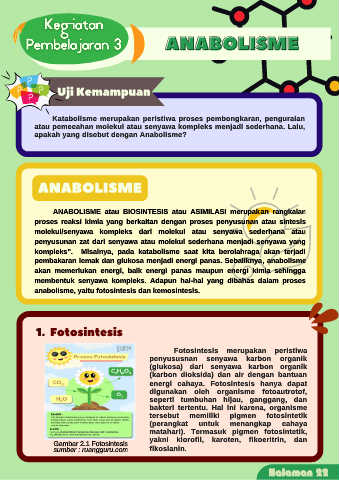 ANABOLISME atau BIOSINTESIS atau ASIMILASI merupakan rangkaian