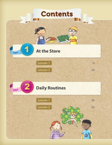 ContentsLesson 14Lesson 210Lesson 116Lesson 222UNIT2Daily RoutinesUNIT1At the Store