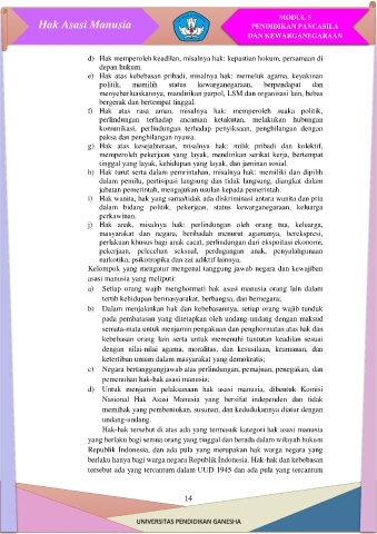 e) Hak atas kebebasan pribadi, misalnya hak: memeluk agama, keyakinan