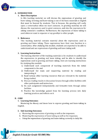 leave taking. Greeting and leave-taking is one of the basic materials in English