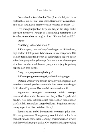 mobil mereka ke tempat parkir. Ove memindahkan persneling