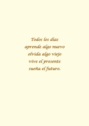 Todos los días aprende algo nuevo olvida algo viejo vive el presente sueña el futuro.