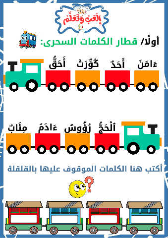 َ ْ َ َ ْ َ ْ ﻢﻠﻌﺗو ﺐﻌﻟإ ِ :ىﺮﺤﺴﻟا تﺎﻤﻠﻜﻟا رﺎﻄﻗ / ً ﻻوأ َ ۡ َ ﱡ ﻖﺣأ تر ﱢ ﻮُﻛ ﺪﺣأ ﻦﻣاء َ َ َ َ ٌ َ َ بﺎ َ ﺌ ِ ﻣ مداء سو ُ ؤر ﺞﺤ ْ ﻟٱ َ ُ ﱡ َ ُ َ ُ ٌ ﺔﻠﻘﻠﻘﻟﺎﺑ ﺎﻬﻴﻠﻋ فﻮﻗﻮﻤﻟا تﺎﻤﻠﻜﻟا ﺎﻨﻫ ﺐﺘﻛأ