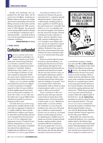 the tuition fees of poor children thus countrywide are tardy about reim- the RTE Act,” says K. Rajendran,