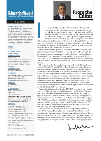 E-mail: marketing@educationworld.in cation, the overwhelming majority of youth struggle with obsolete syllabi,