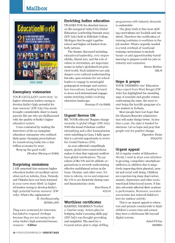 Exemplary visionaries to more such international engage- July) has highlighted the unending