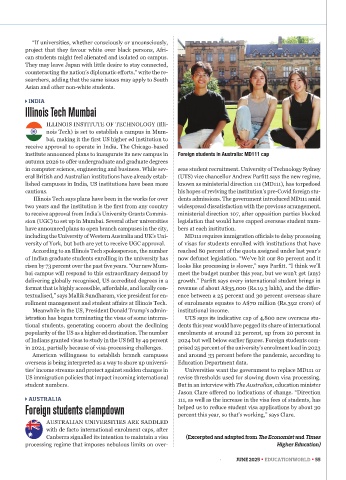 sion (UGC) to set up in Mumbai. Several other universities legislation that would have capped overseas student num-