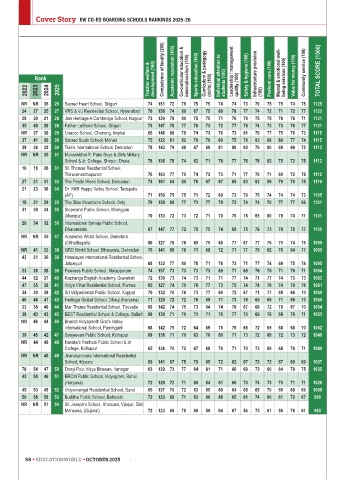 Rank Teacher welfare & development (100) Competence of faculty (200) Academic reputation (100) Co-curricular education & internationalism (100) Sports education (100) Curriculum & pedagogy Individual attention to students (100) Leadership / management Safety & hygiene (100) Infrastructure provision Pastoral care (100) Mental & emotional well- being services (100) Value for m