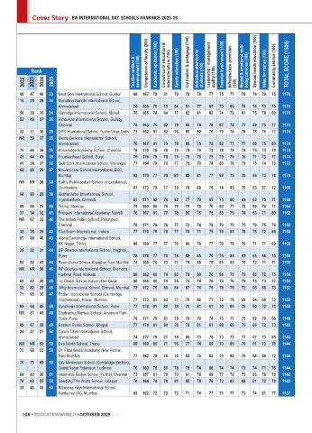 Rank Teacher welfare & development (100) Competence of faculty (200) Academic reputation (100) Co-curricular education & internationalism (100) Sports education (100) Curriculum & pedagogy (100) Individual attention to students (100) Leadership / management Parental involvement (100) Infrastructure provision Mental & emotional well- being services (100) Special needs education