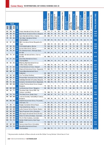 Rank Teacher welfare & development (100) Competence of faculty (200) Academic reputation (100) Co-curricular education & internationalism (100) Sports education (100) Curriculum & pedagogy (100) Individual attention to students (100) Leadership / management Parental involvement (100) Infrastructure provision Mental & emotional well- being services (100) Special needs education