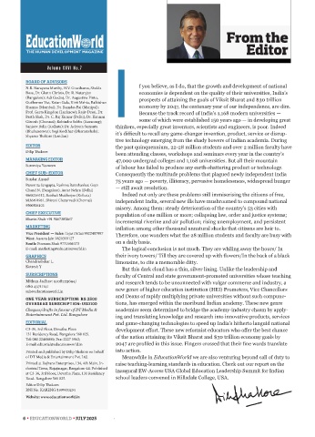 E-mail: editorial@educationworld.in 2047 are profiled in this issue. Fingers crossed that their fine words translate