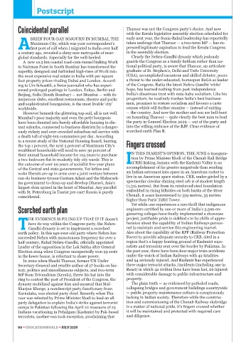 to Nariman Point in South Bombay has transformed the tional political party, is aware that Tharoor, an articulate