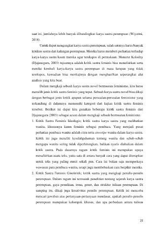 (Djajanegara, 2003) tujuannya adalah kritik sastra feminis bisa menafsirkan serta
