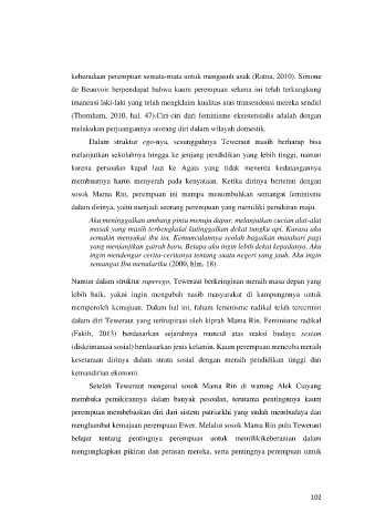 keberadaan perempuan semata-mata untuk mengasuh anak (Ratna, 2010). Simone