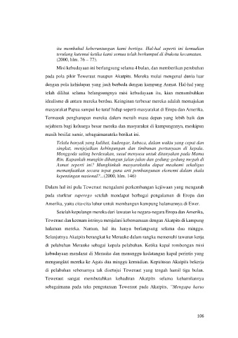 pada pola pikir Teweraut maupun Akatpits. Mereka mulai mengenal dunia luar