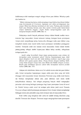 Adapun inti simbolisme dalam novel ini adalah aturan adat dari para leluhur