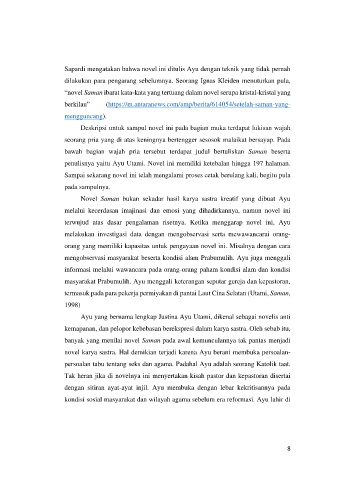 novel karya sastra. Hal demikian terjadi karena Ayu berani membuka persoalan-
